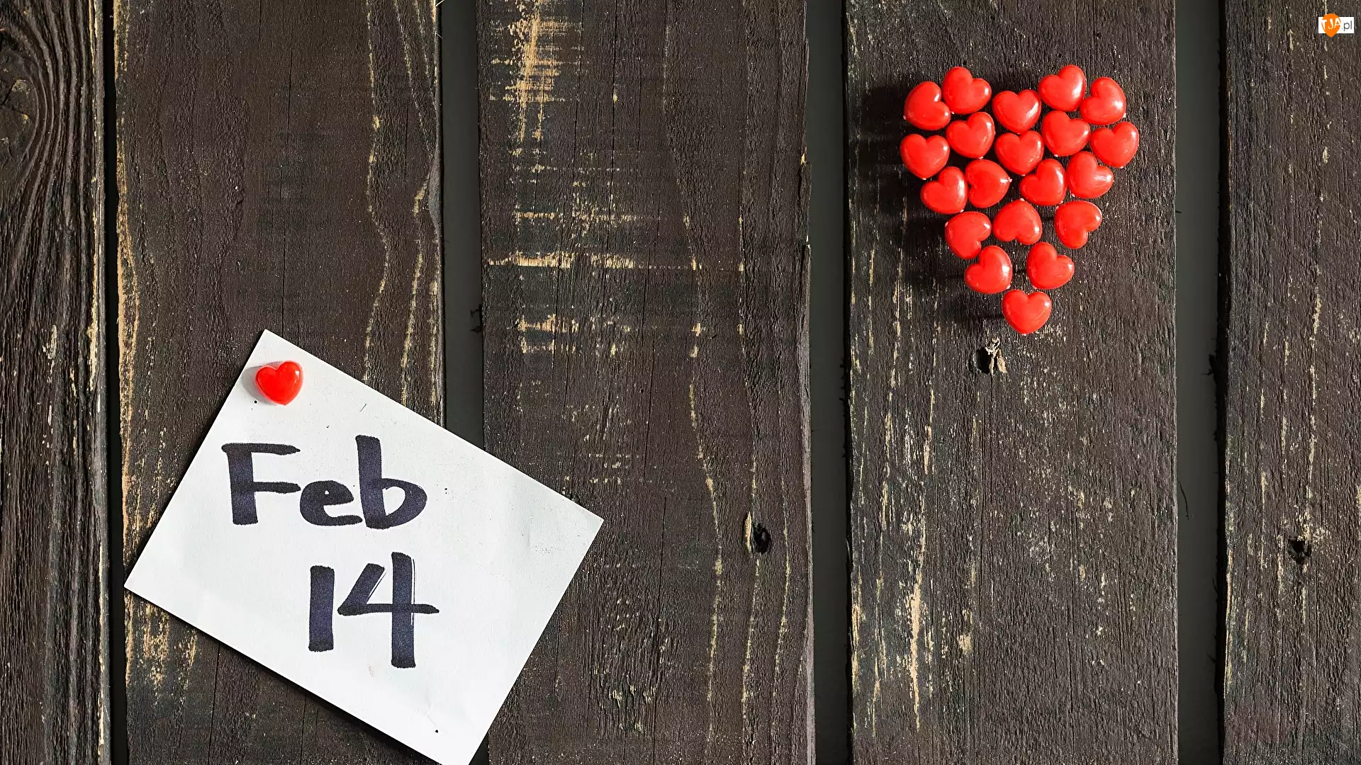Data, Kartka, Serduszka, Walentynki, 14 Luty, Deski