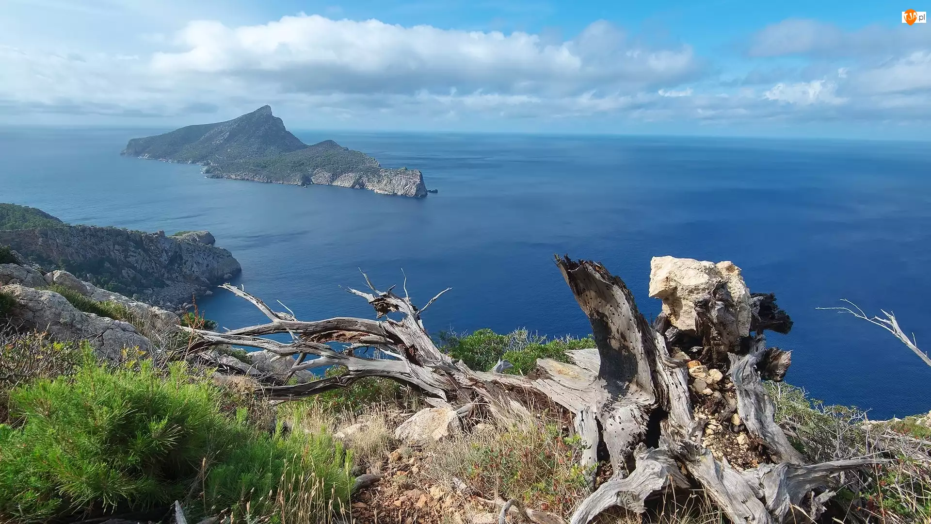 Skały, Morze, Wyspa Sa Dragonera, Hiszpania, Konary, Majorka