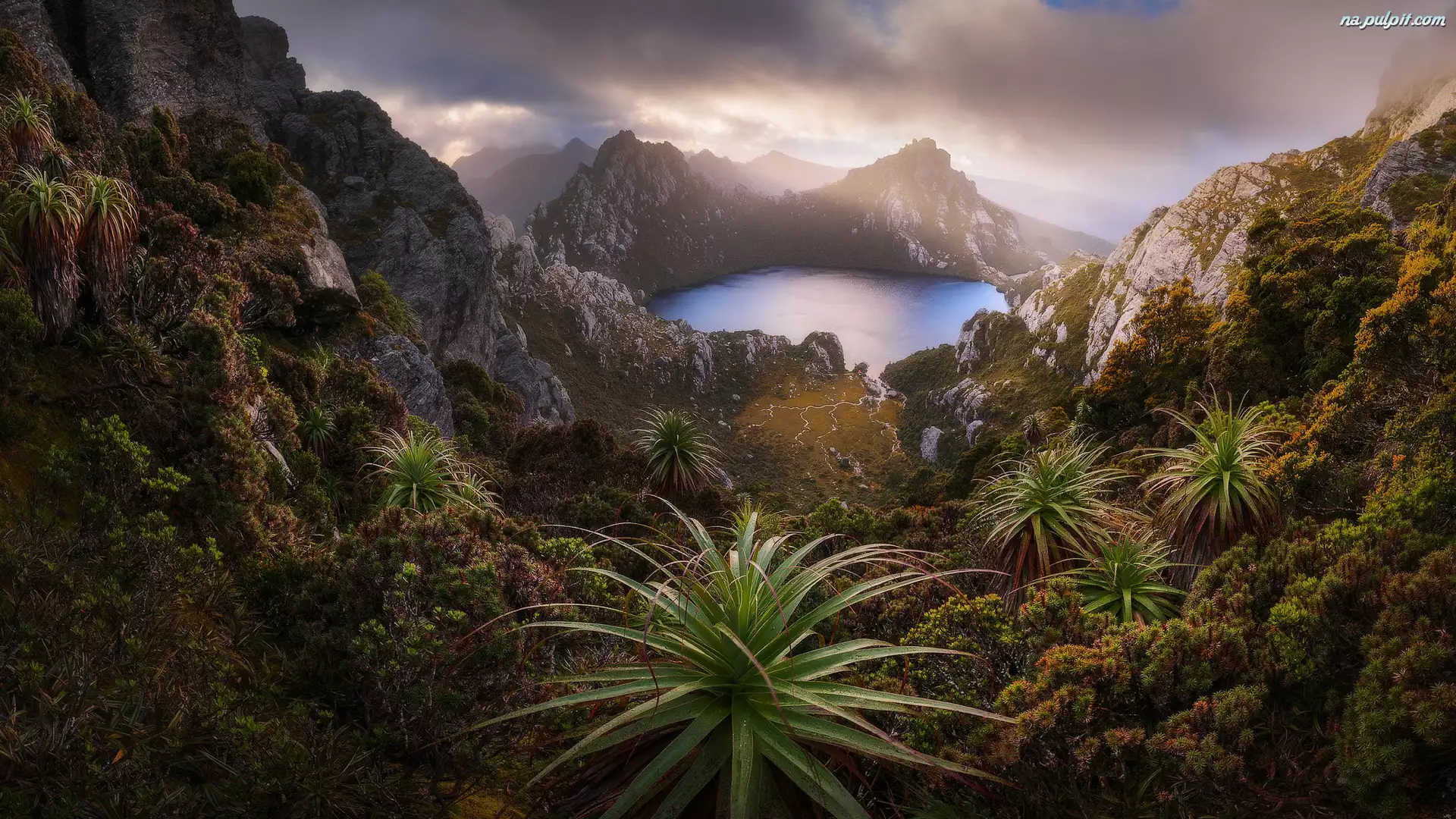 Tasmania, Park Narodowy Southwest, Rośliny, Australia, Jezioro Oberon, Skały, Góry