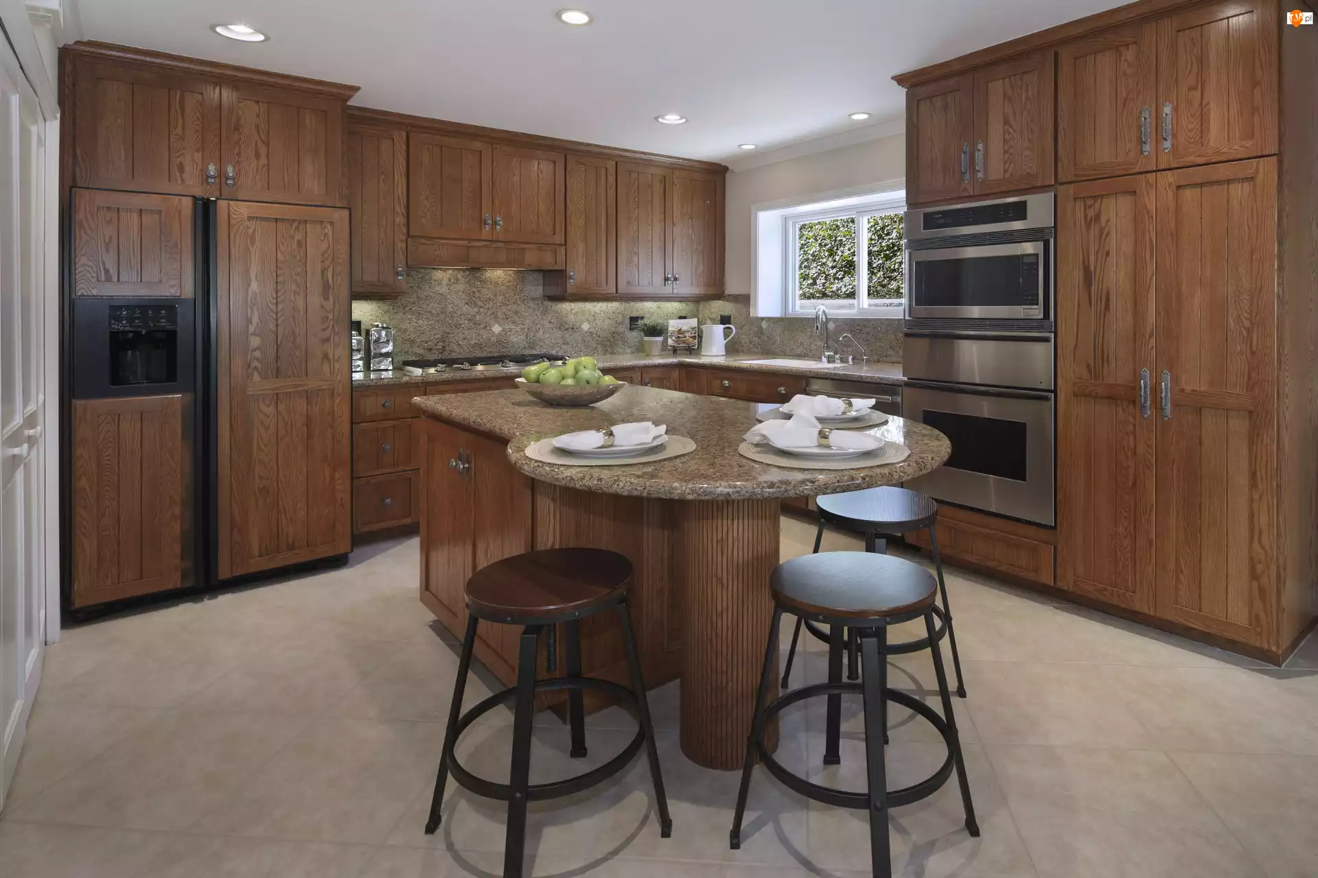 Meble, Taborety, Drewniane, Kuchnia, Wyspa kuchenna