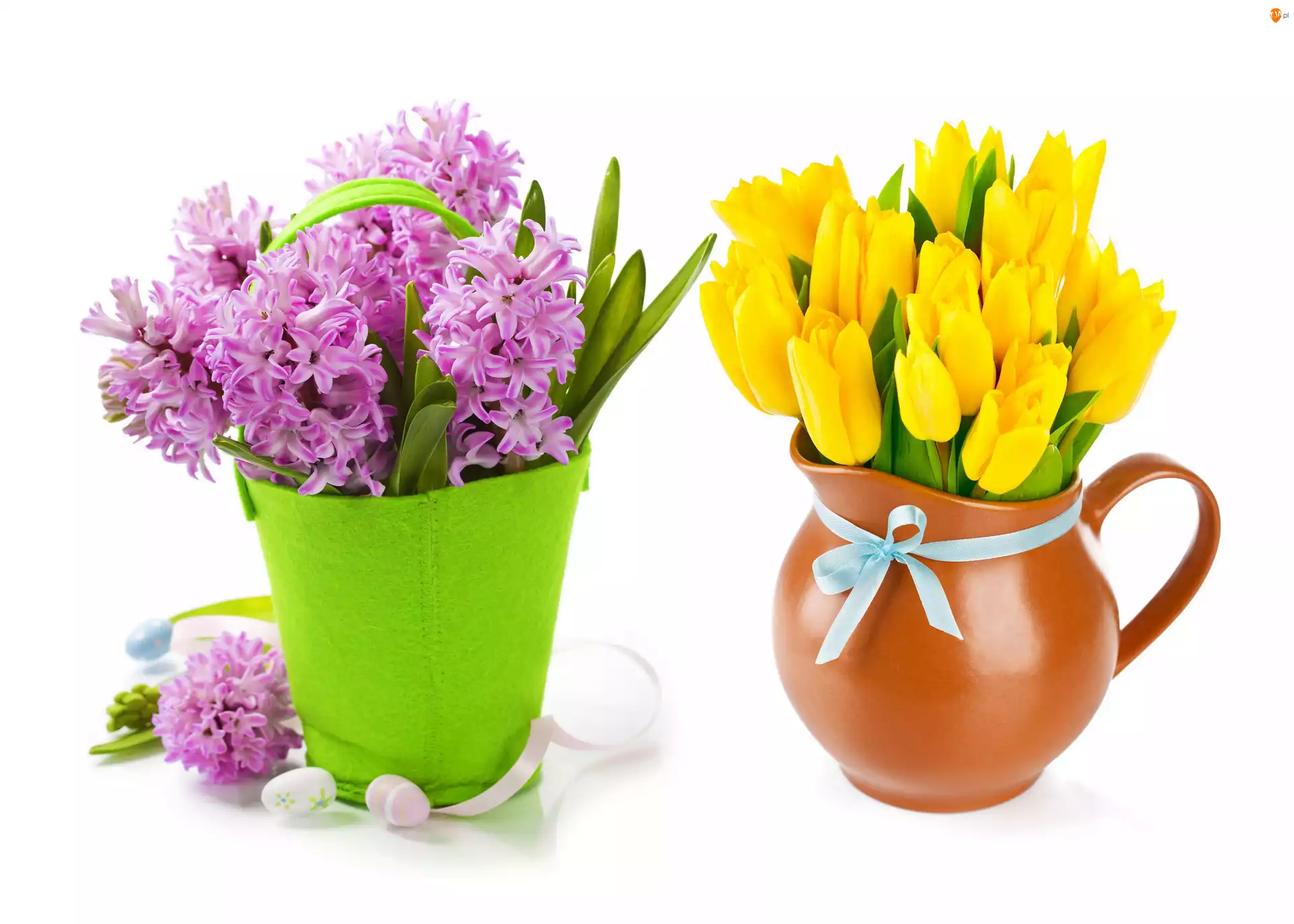 Dekoracja, Hiacynty, Pisanki, Wielkanocna, Dzbanek, Wiaderko, Tulipany