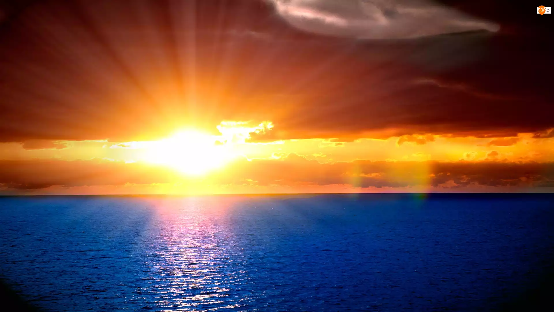 Woda, Krajobraz, Słońca, Zachód, Morze