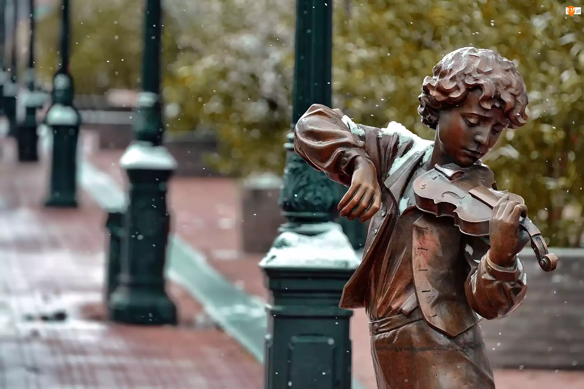 Z, Park, Skrzypek, Zima, Statua, Brązu
