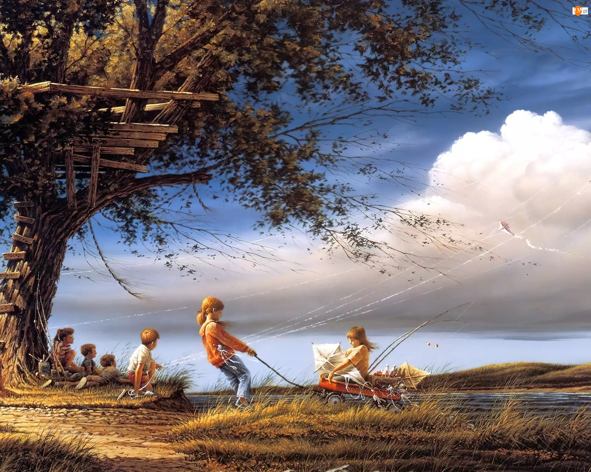Zabawa, Obraz, Lato, Terry Avon Redlin, Dzieci