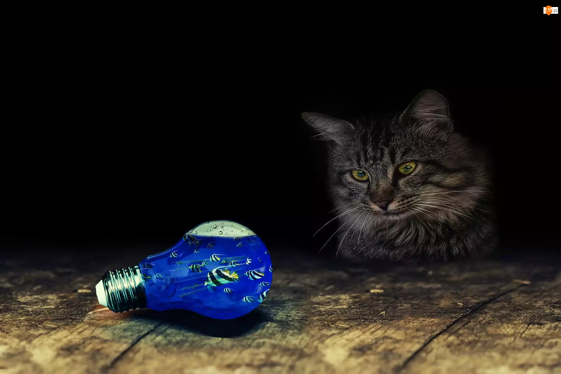 Fantasy, Kot, Żarówka, Rybki