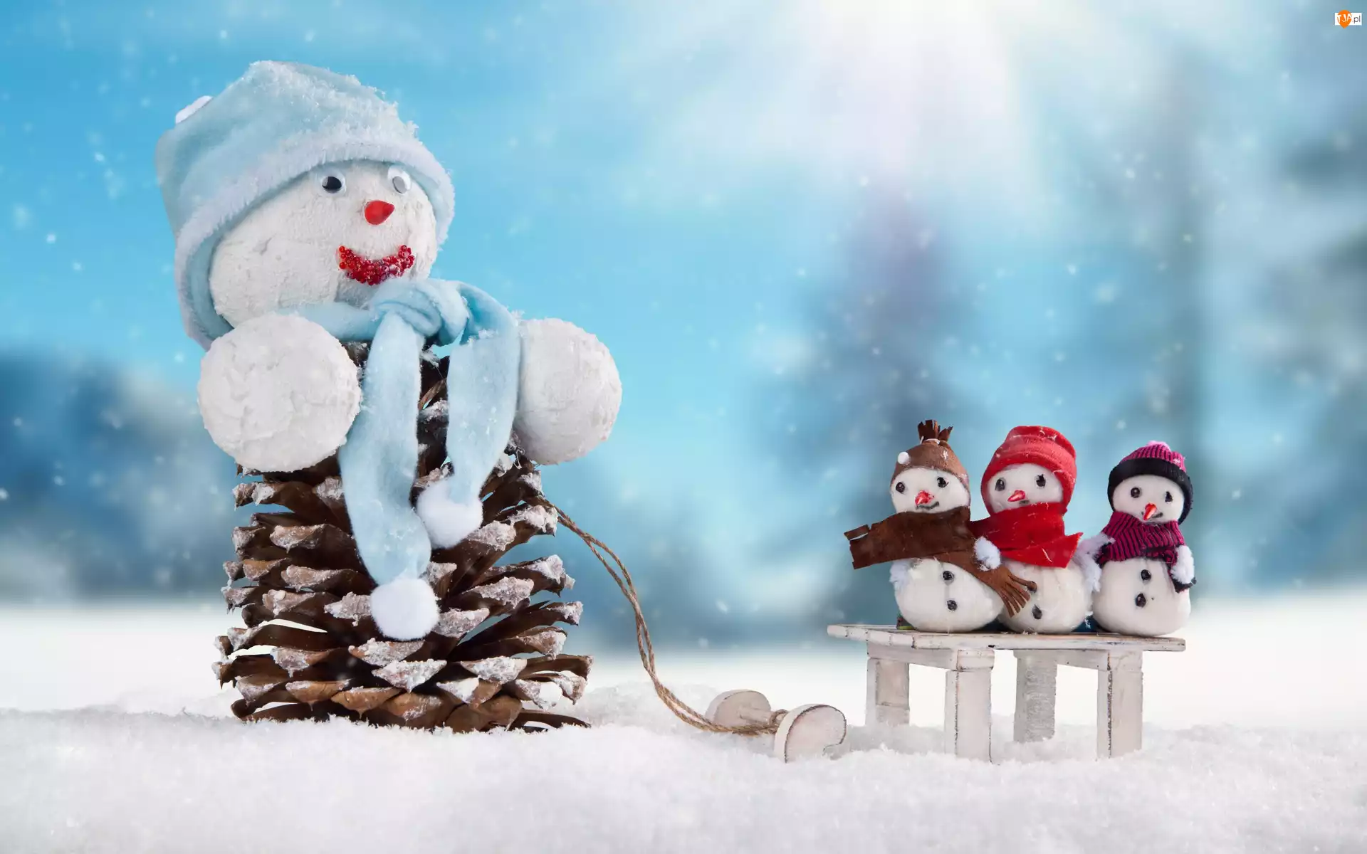 Bałwanki, Dekoracja, Sanki, Zima, Świąteczna