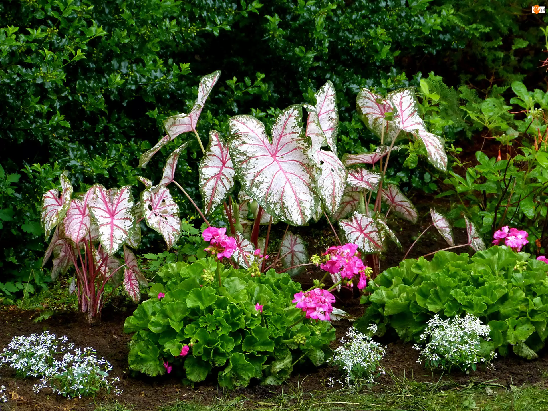 Kaladium dwubarwne, Kwiaty, Kwiatki, Roślina, Białe, Pelargonie, Różowe