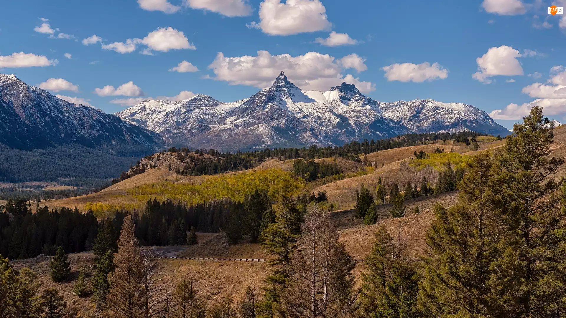 Absaroka Range, Szczyty, Stany Zjednoczone, Góry, Wyoming, Wzgórza, Drzewa