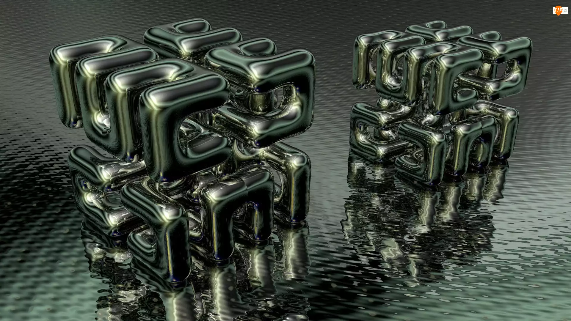 Abstrakcja, Grafika, Metaliczne, Kostki