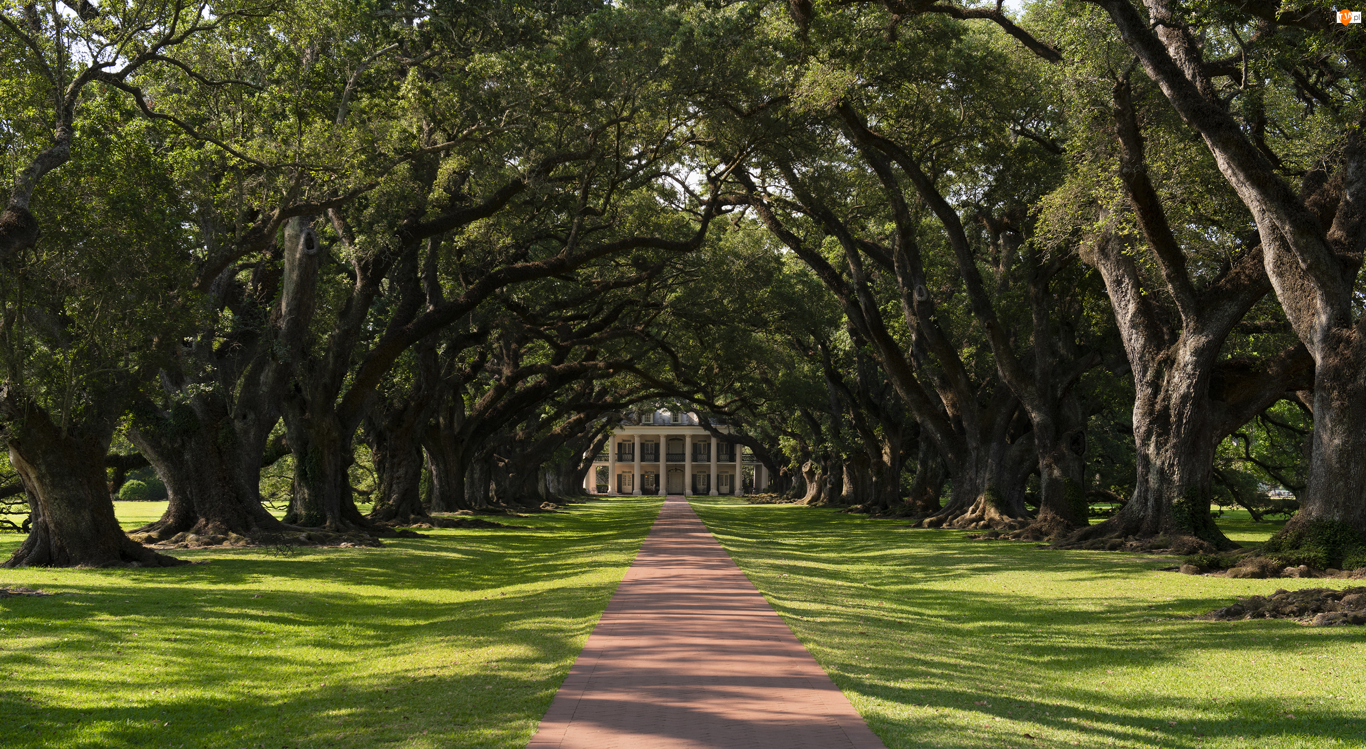 Plantacja Oak Valley, Aleja, Dom, Luizjana, Drzewa, Droga, Stany Zjednoczone, Dęby