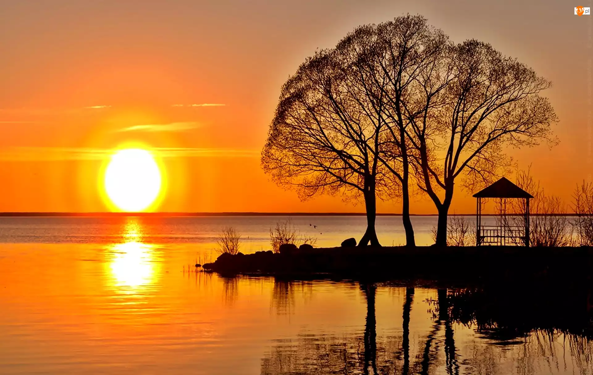 Altanka, Jezioro, Słońca, Zachód, Drzewa