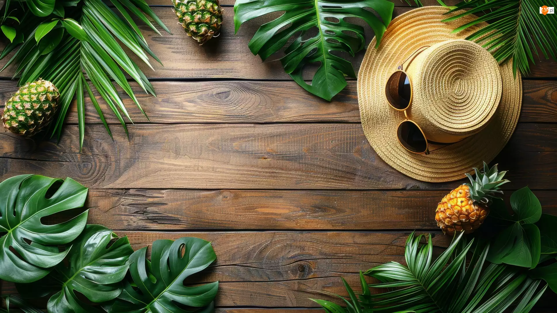 Ananas, Kapelusz, Drewno, Kompozycja, Liście, Deski