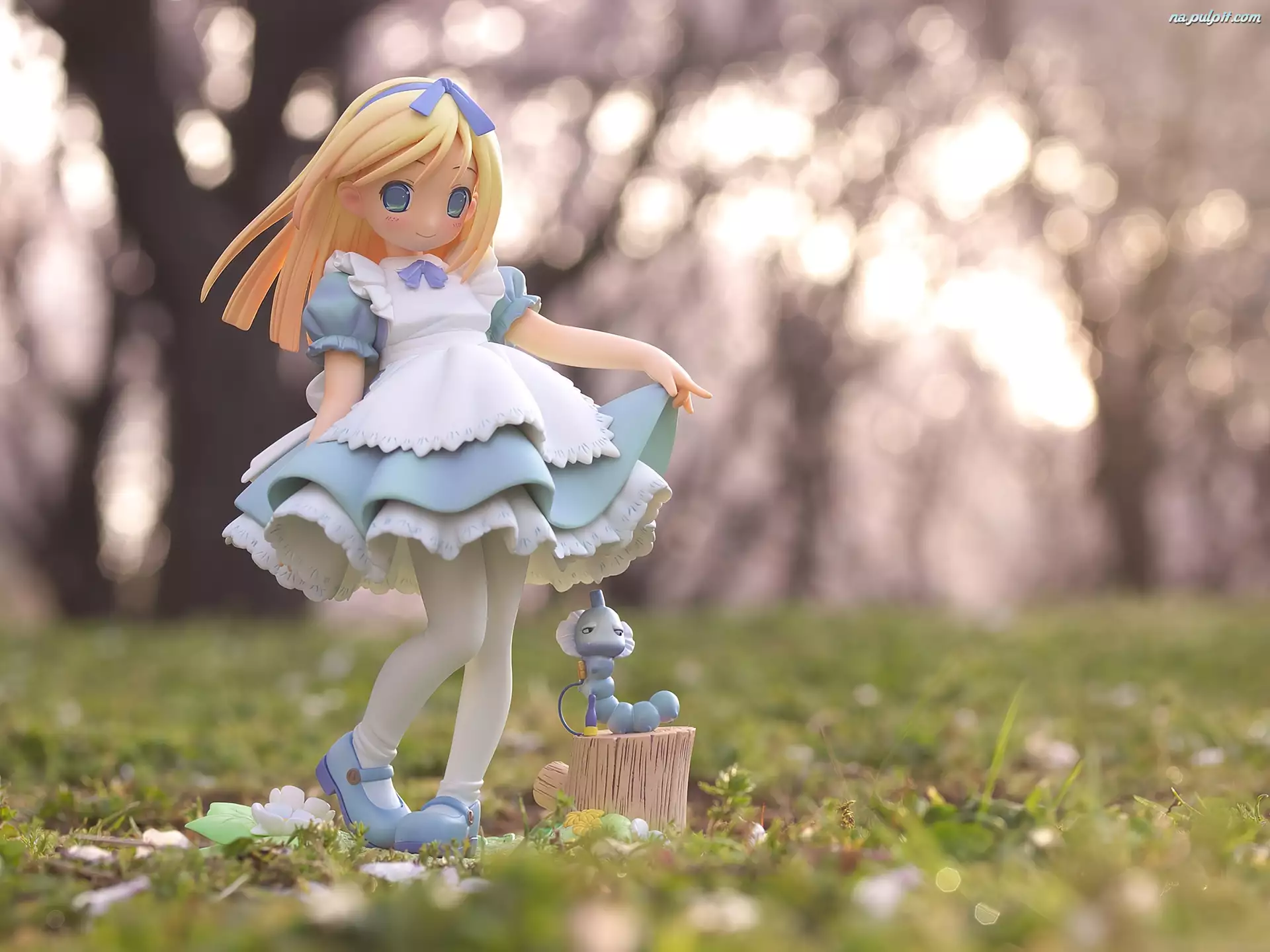 Anime, Łąka, Śliczna, Sukienka, Figurka, Blondynka