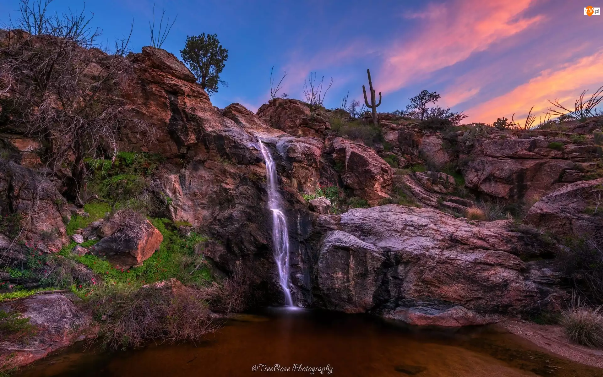 Arizona, Stany Zjednoczone, Park Narodowy Saguaro, Wodospad, Tucson, Skały