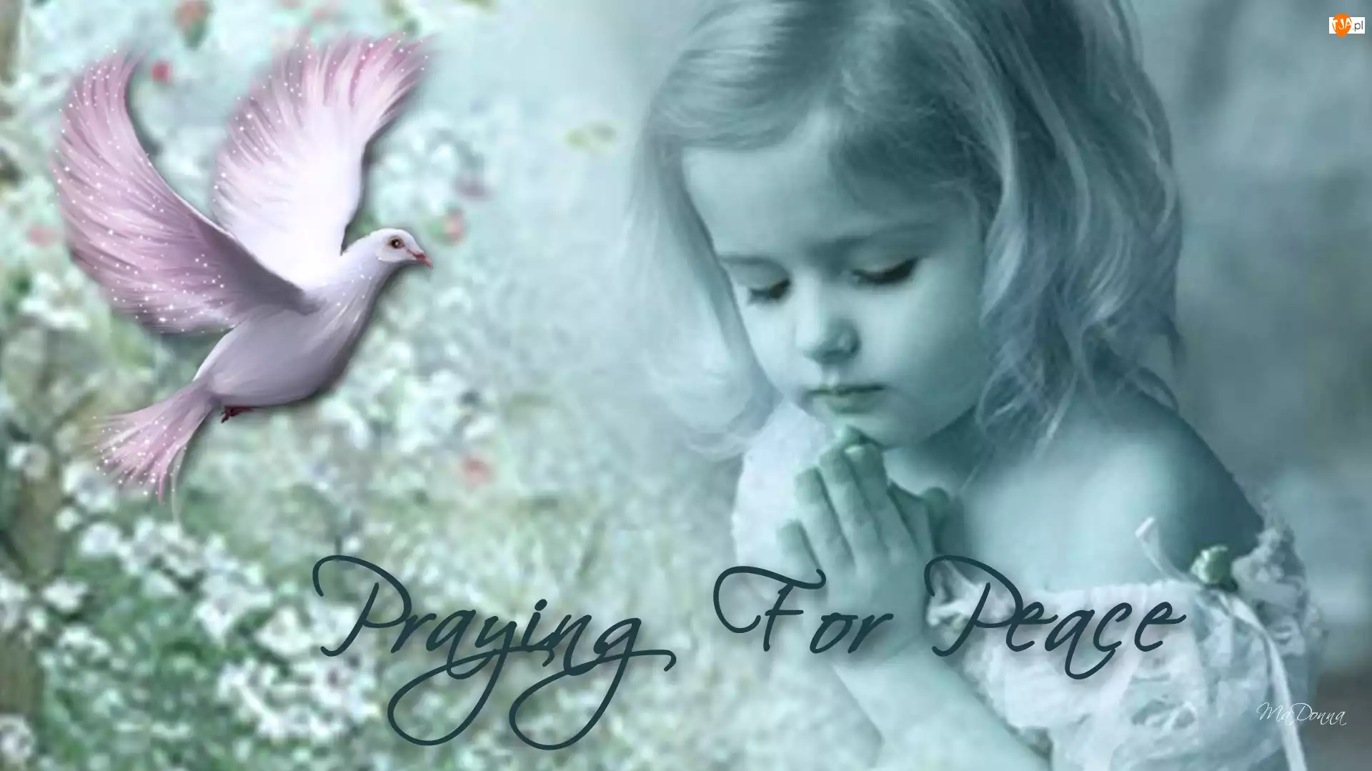 Art, Modląca, Dziewczynka, Się, Ptaszek