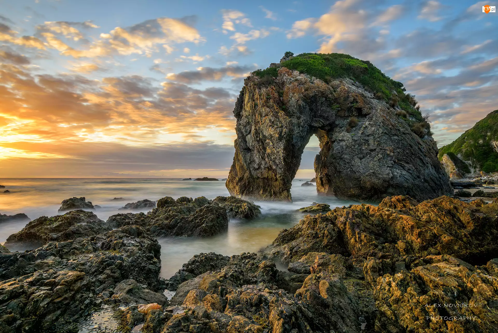Atrakcja turystyczna, Horse Head Rock, Australia, Skały, Nowa Południowa Walia, Zachód słońca, Morze