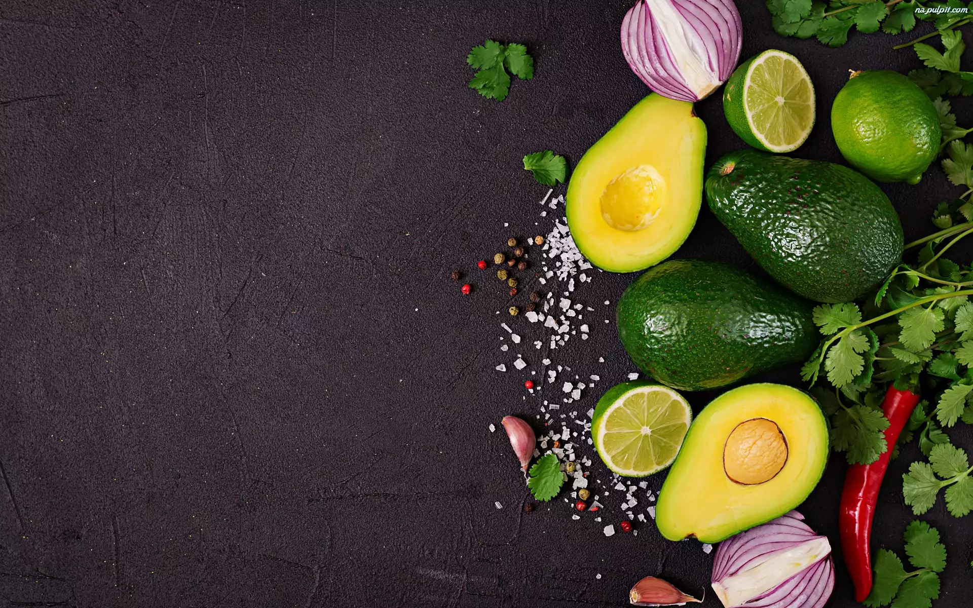 Awokado, Owoce, Papryka, Przyprawy, Limonka, Czosnek