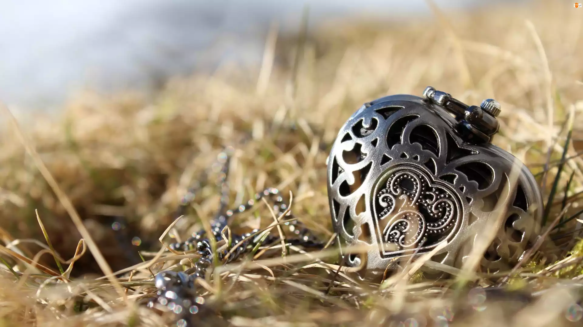 Serce, Rozmycie, Wisiorek, Ażurowy, Trawa