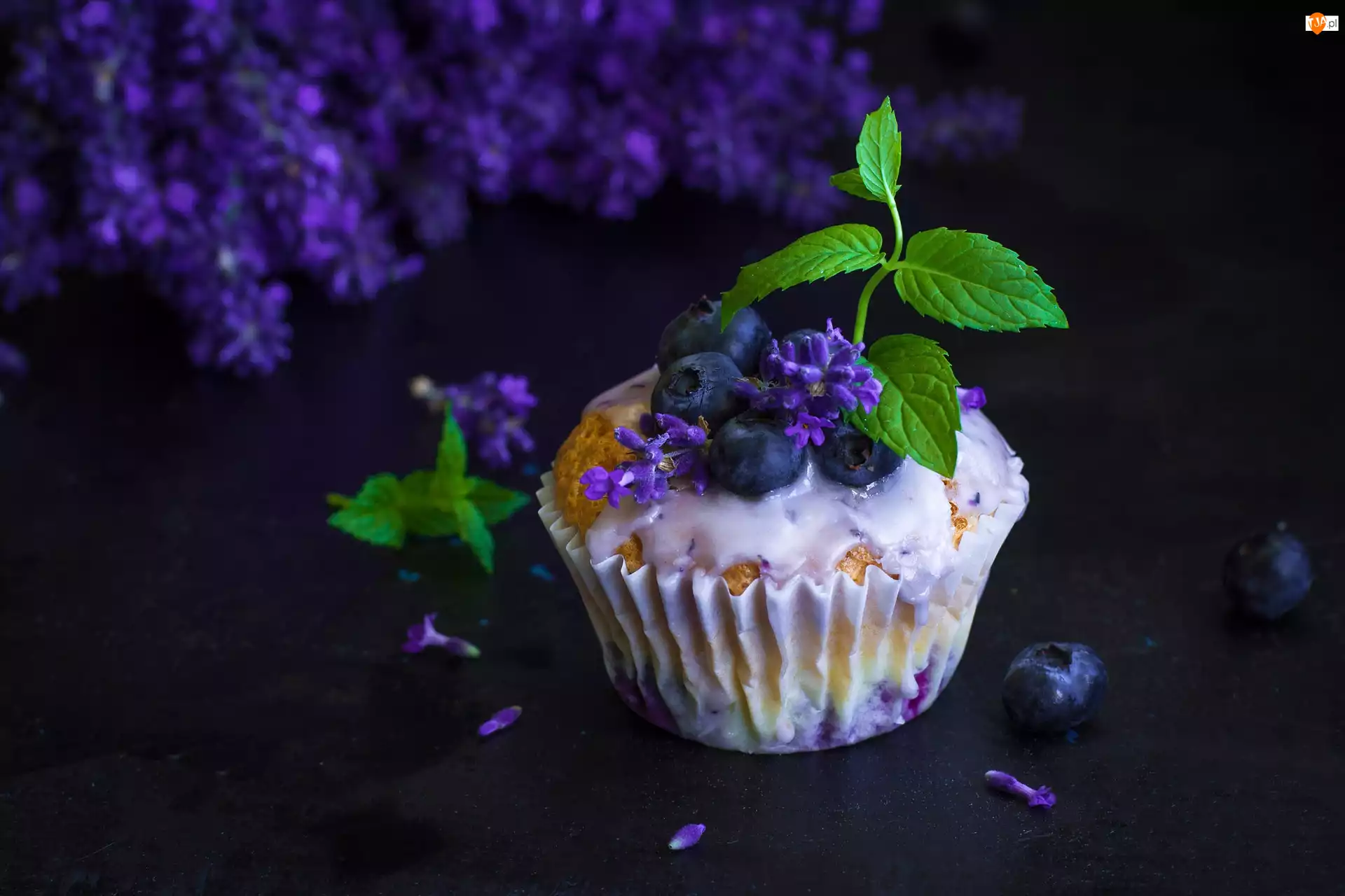 Mięta, Ciasto, Jagody, Kwiaty, Babeczka, Listki, Bez, Muffinka