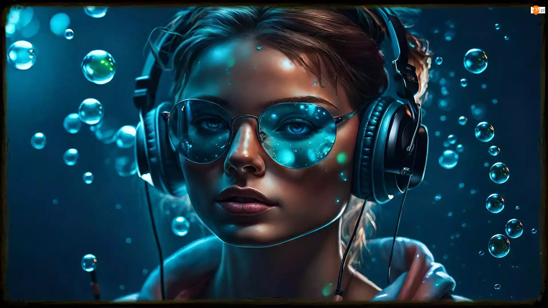 Bąbelki, Dziewczyna, Okulary, Słuchawki