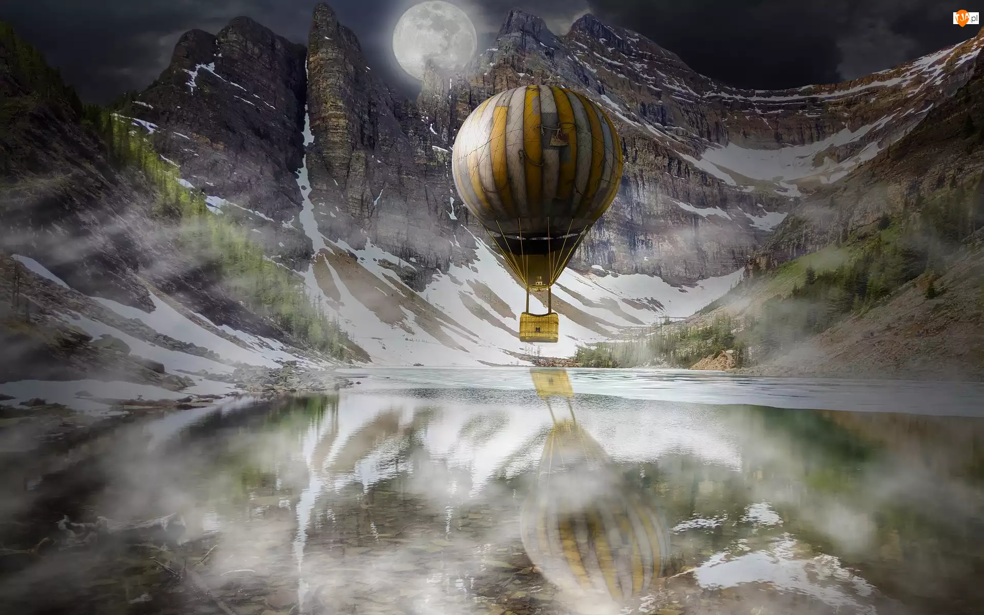 Balon, Fotomontaż, Góry, Jezioro
