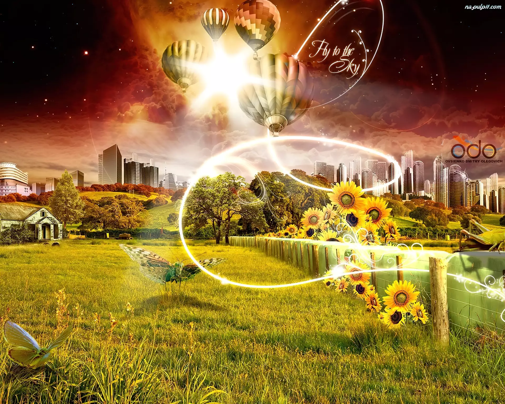 Balony, Słoneczniki, Motyle
