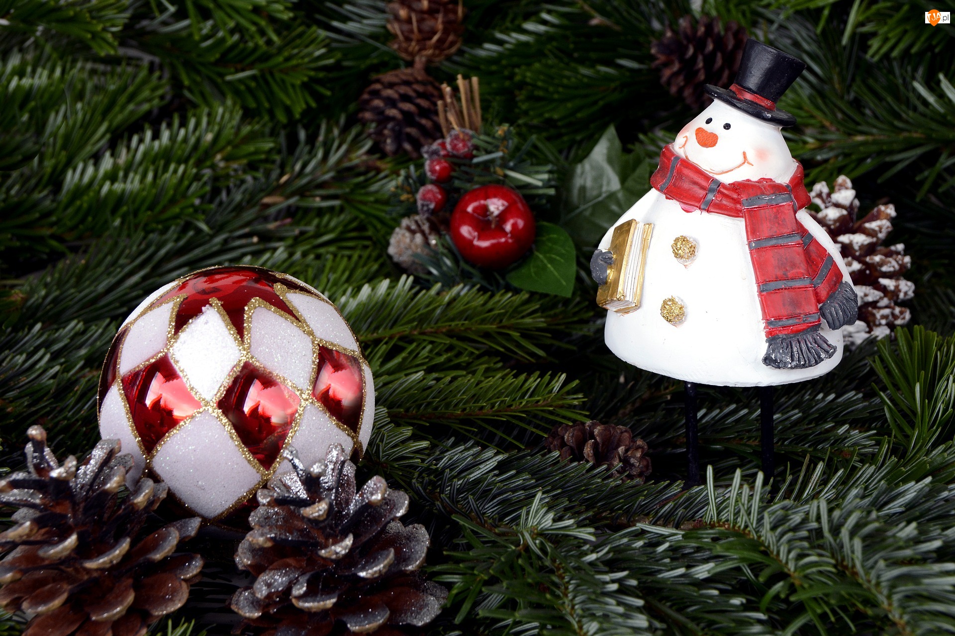 Szyszki, Bałwanek, Dekoracja, Świąteczna, Gałązki, Figurka, Bombki