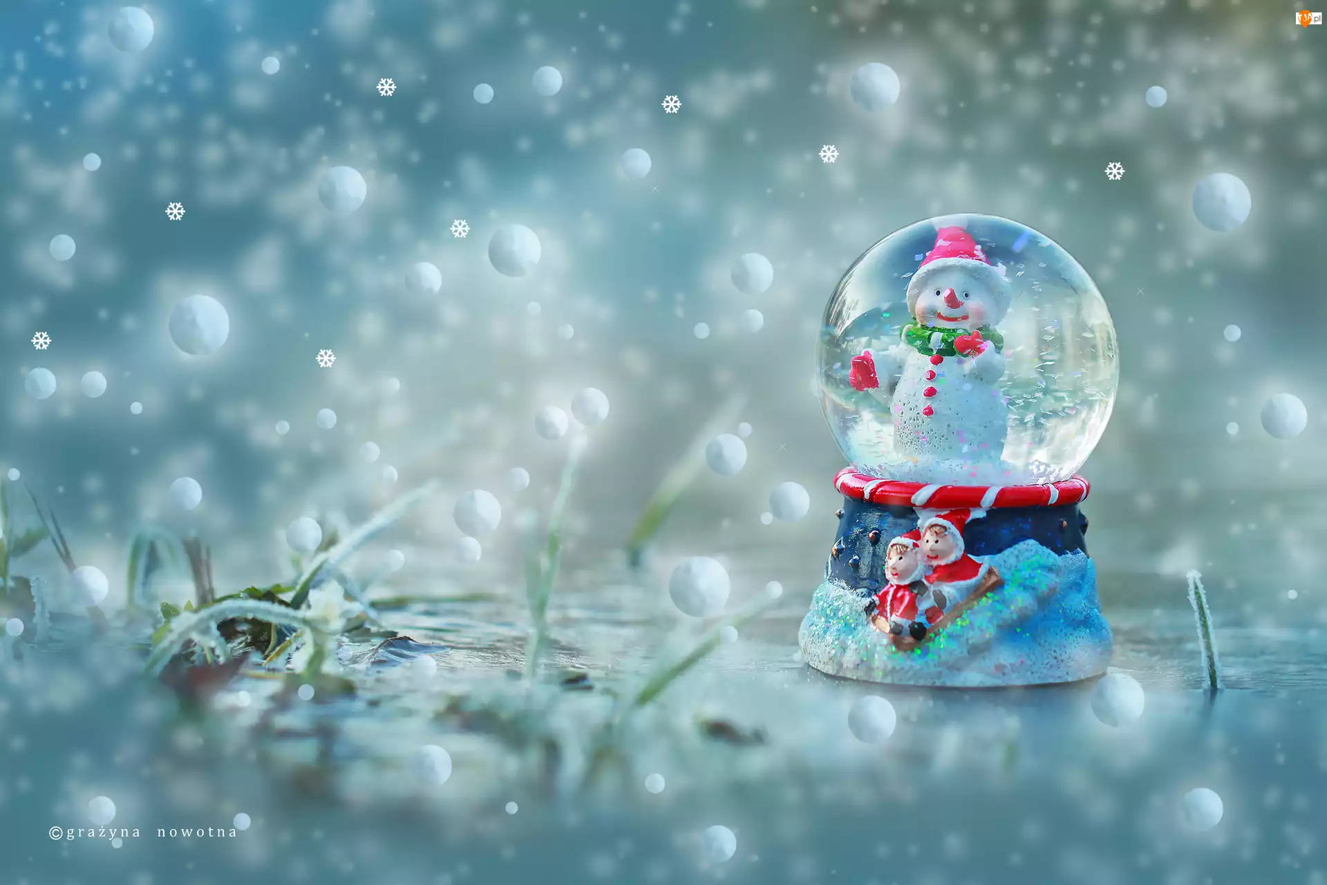 Bałwanek zamknięty w śnieżnej kuli