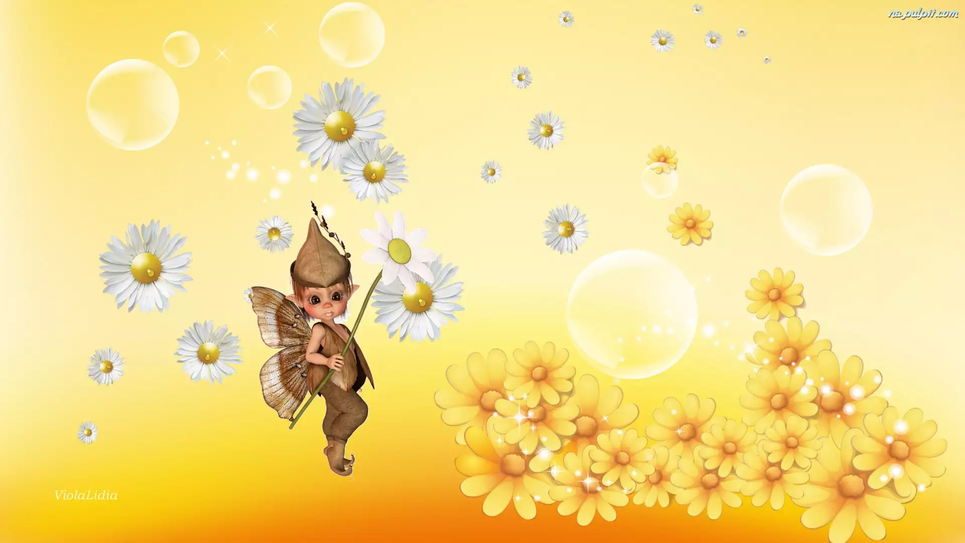 Bańki, Grafika, Elf, Laleczka, Kwiaty