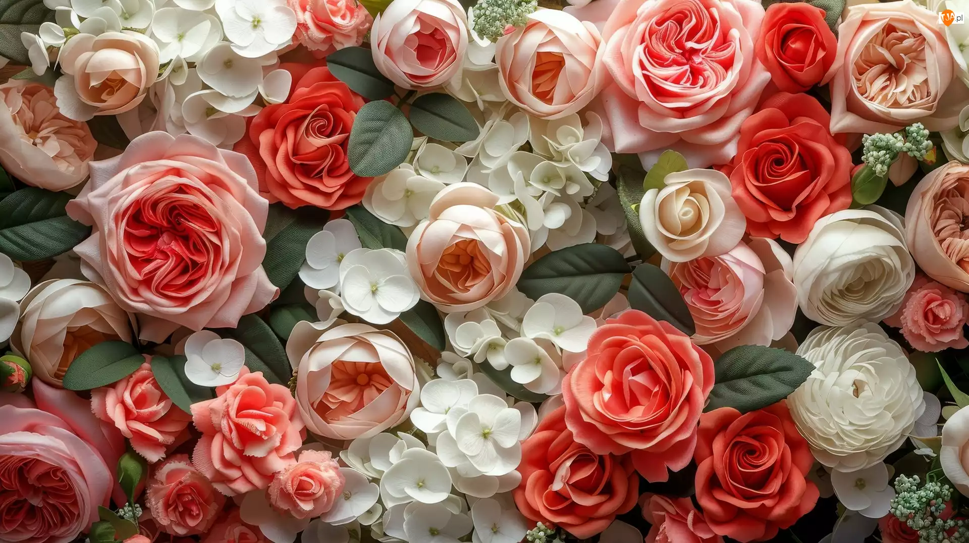 Czerwone, Listki, Białe, Kwiaty, Róże