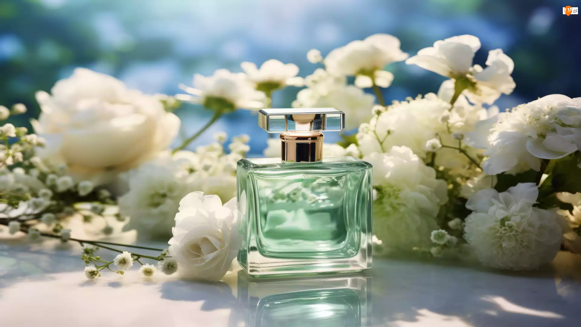 Białe, Kompozycja, Flakon, Perfumy, Kwiaty