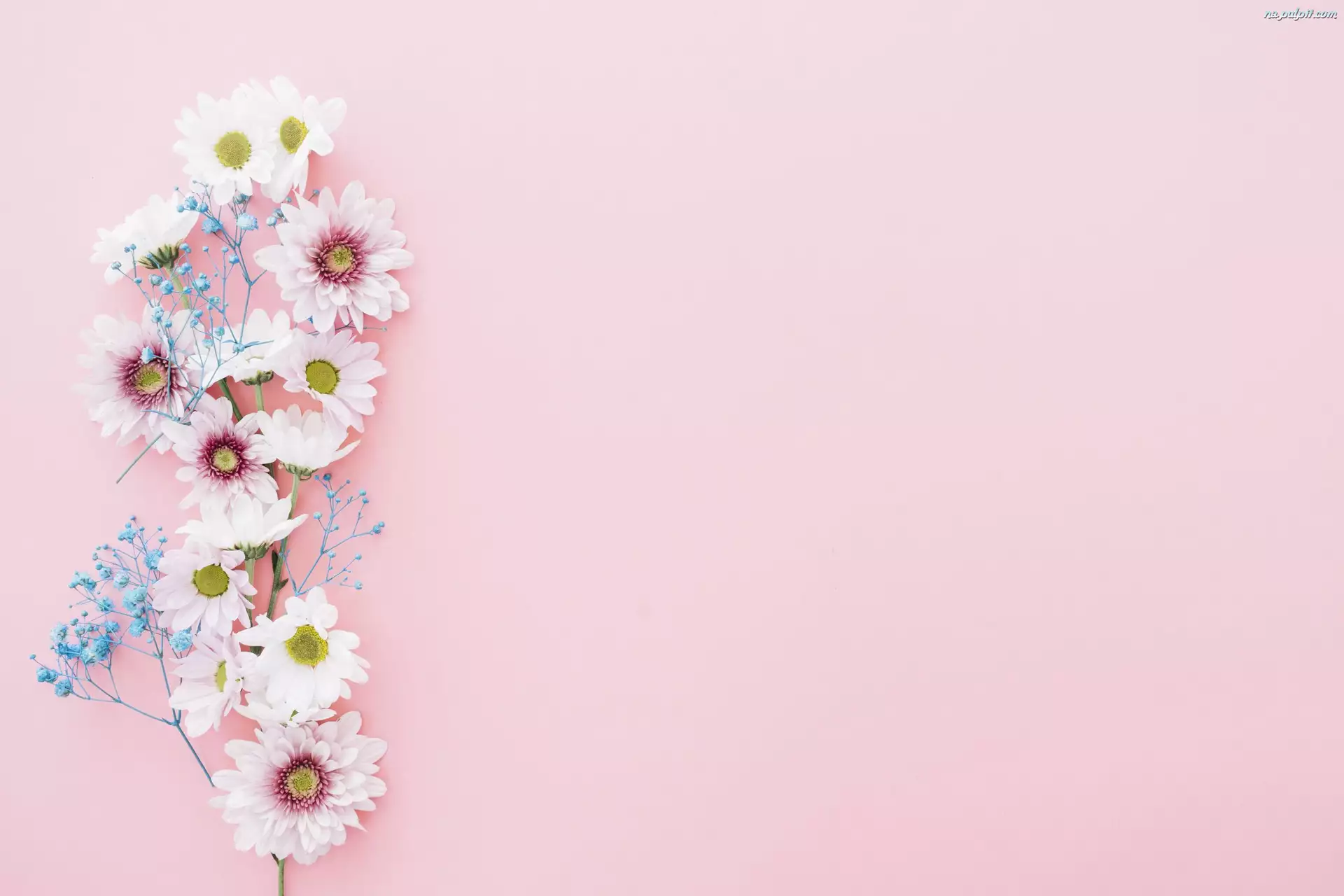Białe, Kwiaty, Gipsówka, Tło, Stokrotki, Różowe