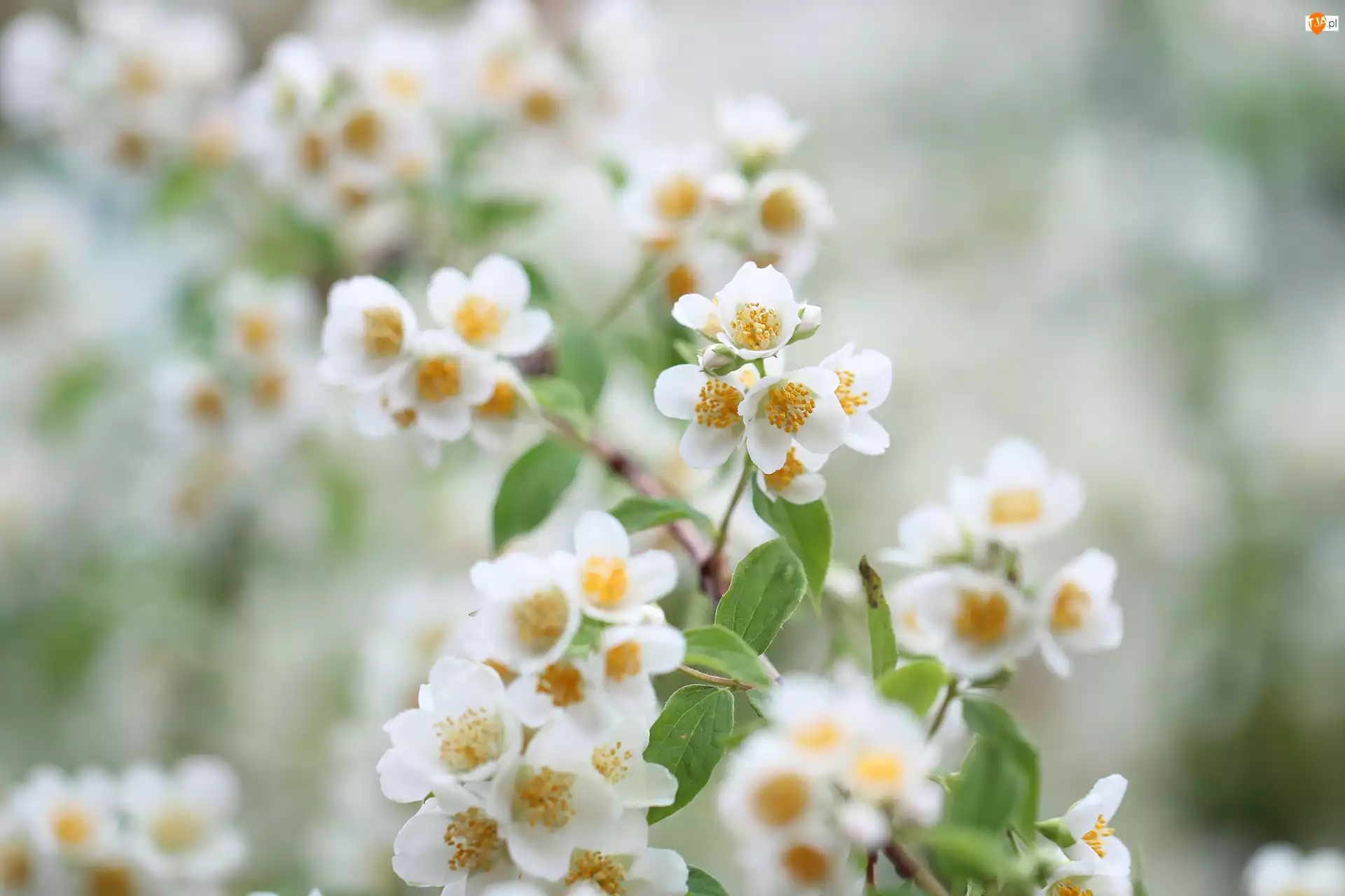 Kwiaty, Gałązki, Białe, Jaśmin, Krzew