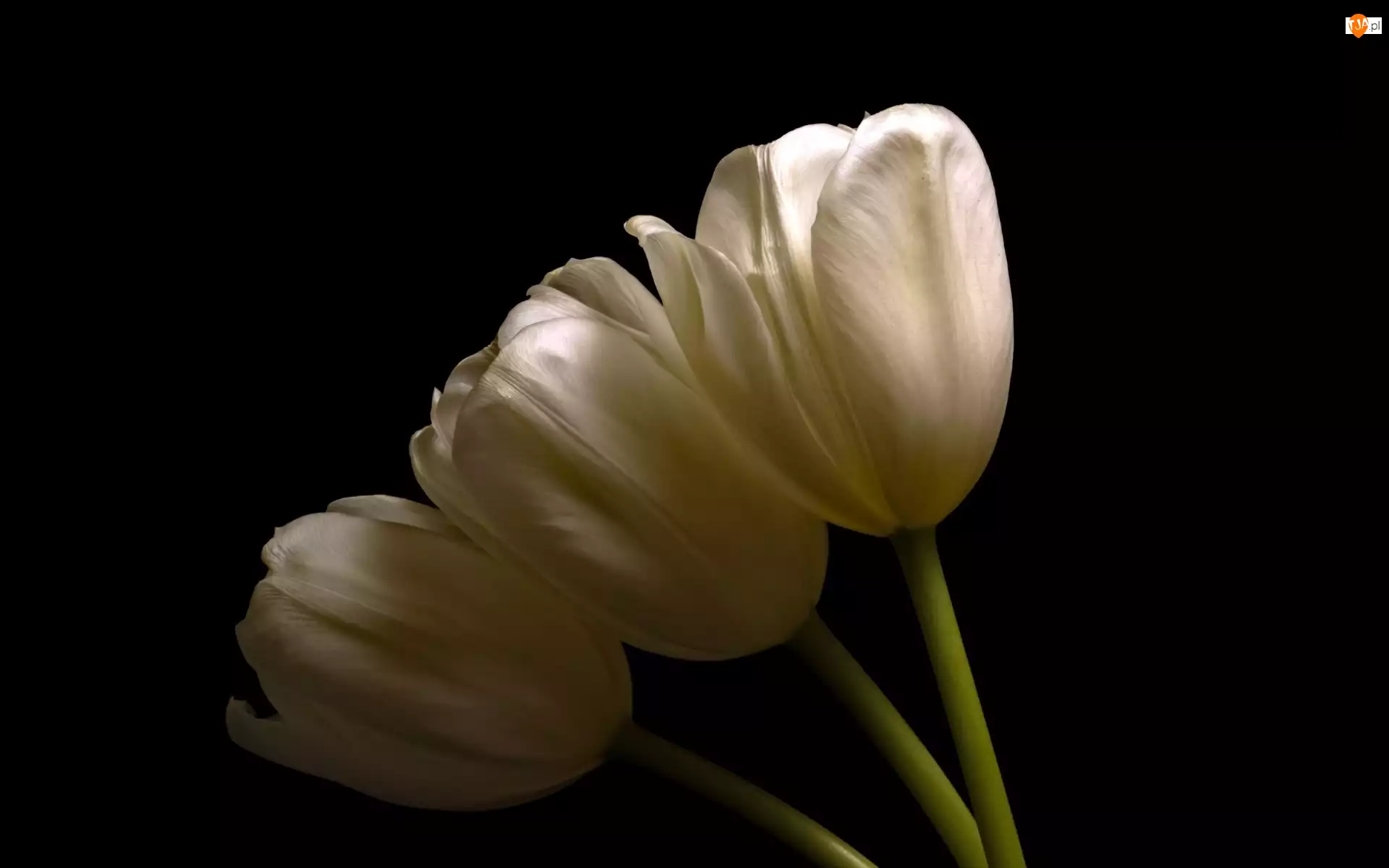 Tło ciemne, Kwiaty, Białe, Tulipany