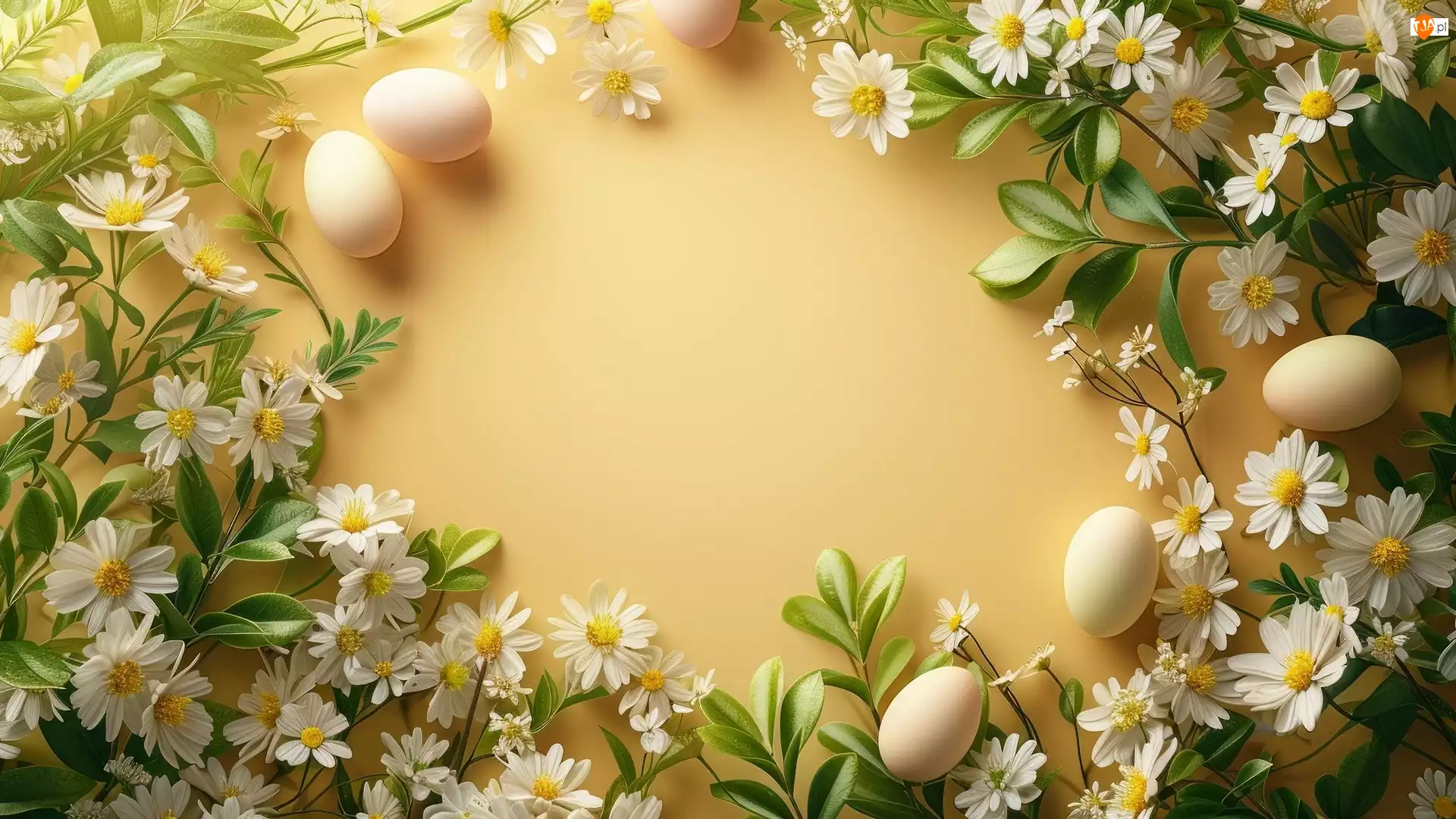 Białe, Wielkanoc, Gałązki, Jajka, Kwiaty