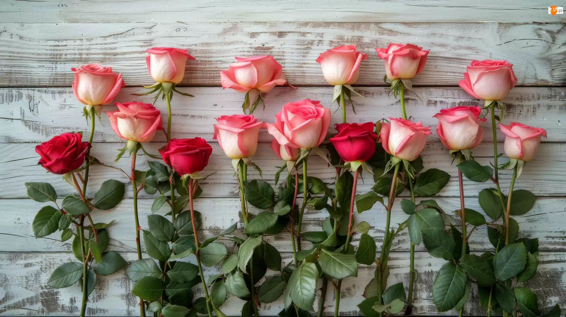 Biało-czerwone, Listki, Kwiaty, Kompozycja, Róże