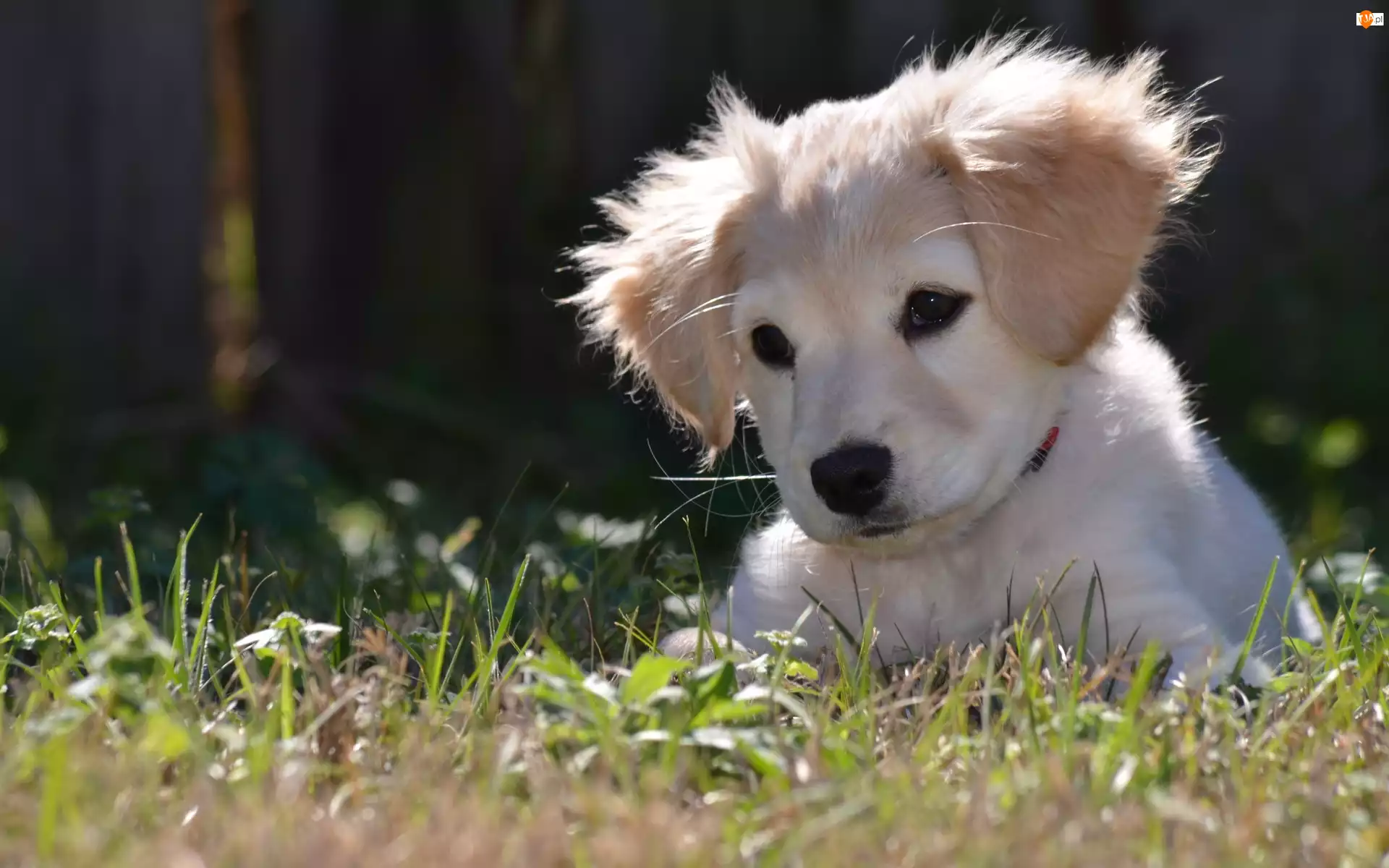 Biały, Golden Retriever, Szczeniaczek, Trawa