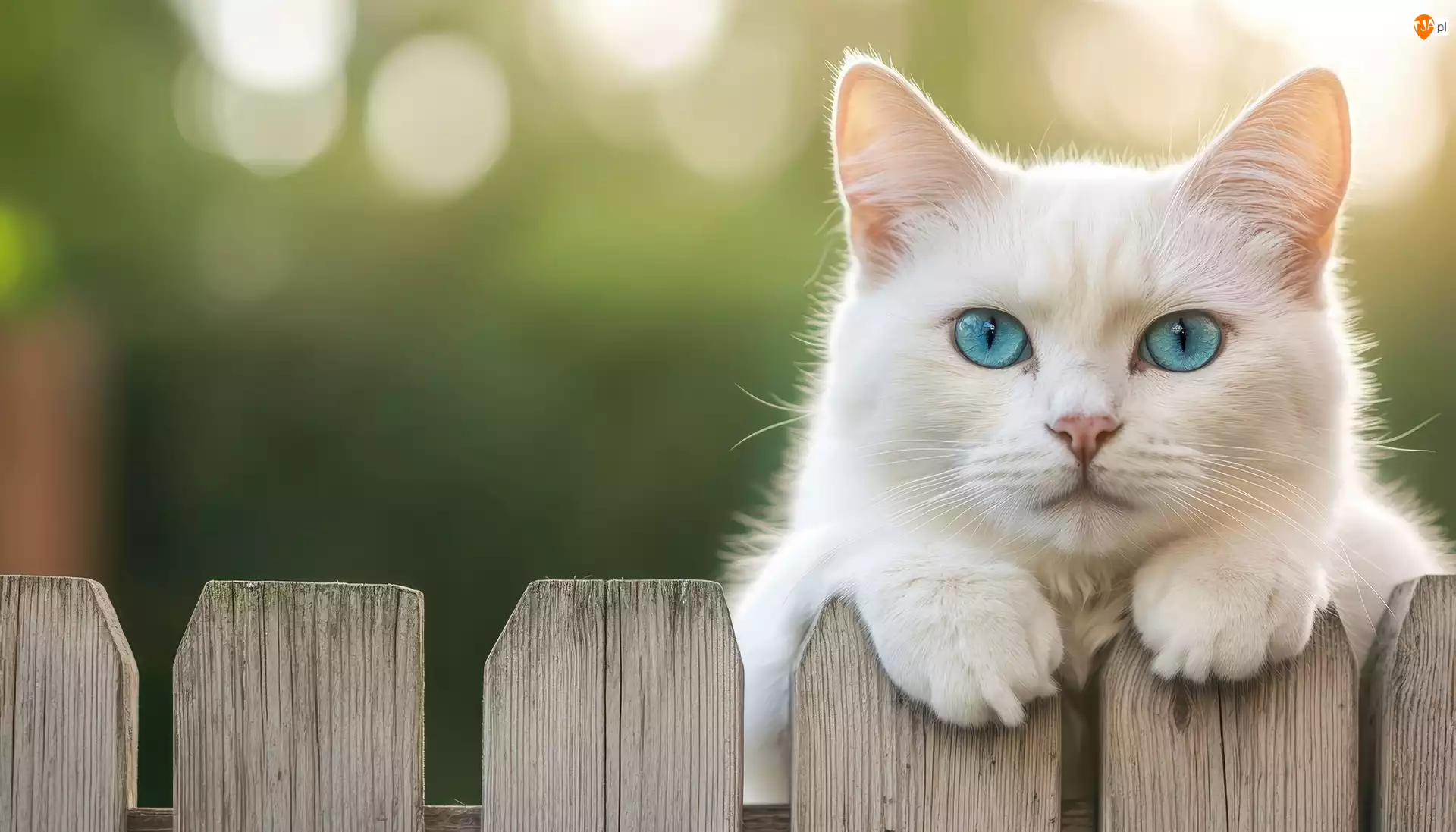 Niebieskooki, Grafika, Biały, Kot, Płot