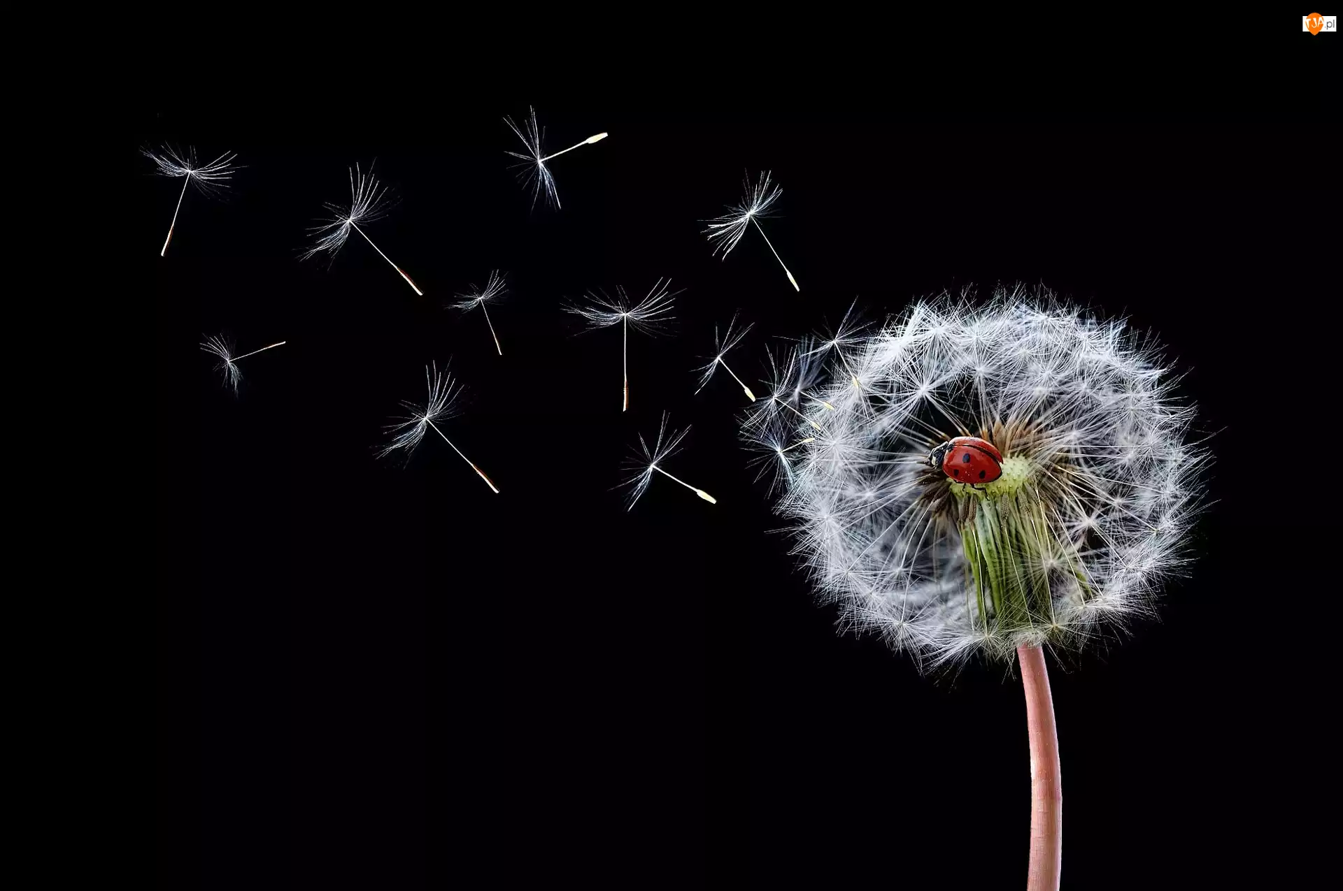 Biedronka, Tło, Mniszek Pospolity, Dmuchawiec, Czarne