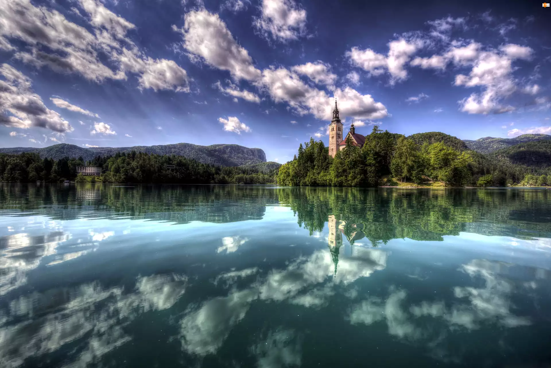 Bled, Obłoki, Wyspa, Słowenia, Na Jeziorze, Kościół