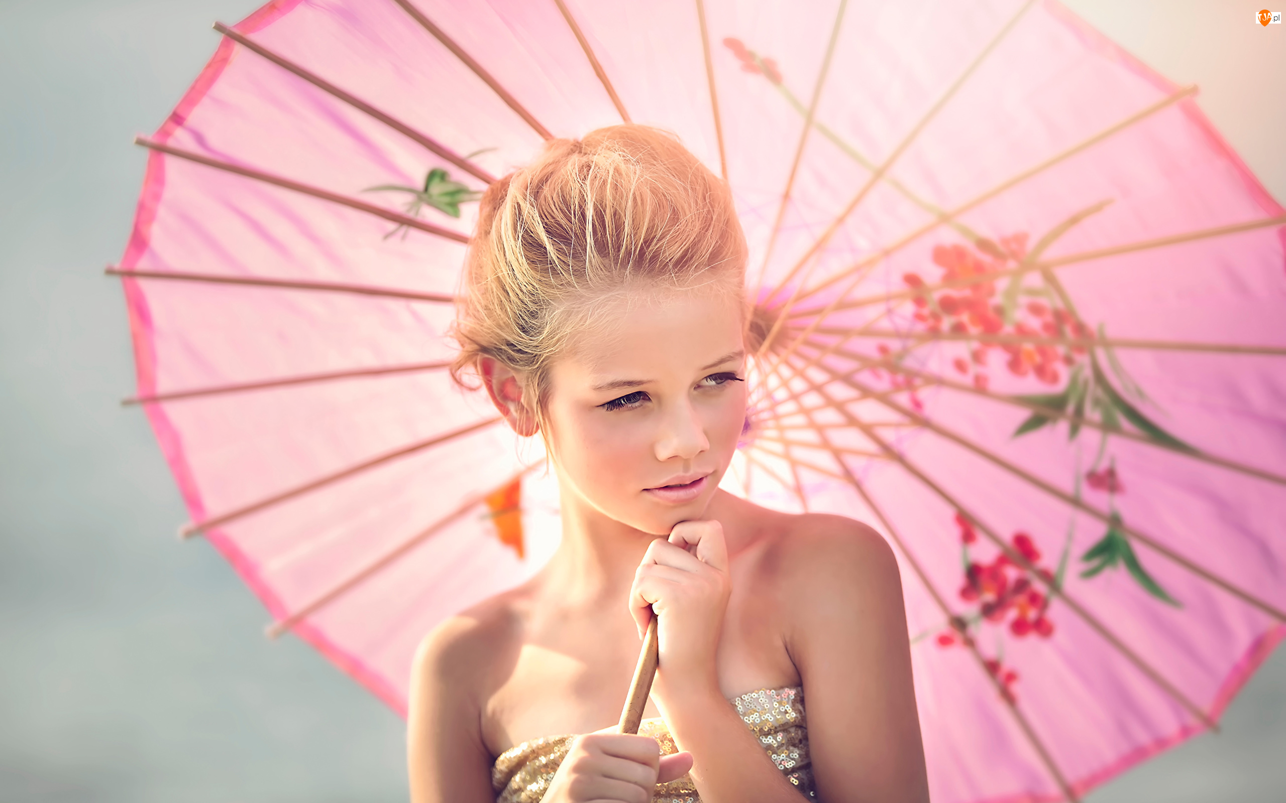 Parasolka, Blondynka, Dziewczyna, Różowa