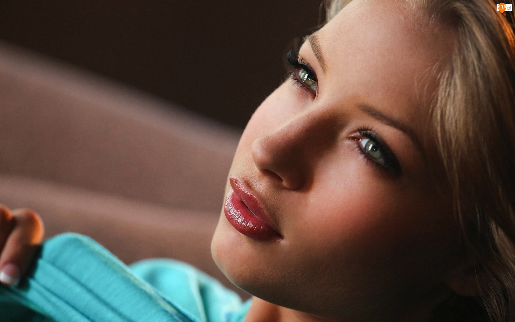Blondynka, Makijaż, Rozmarzone, Oczy