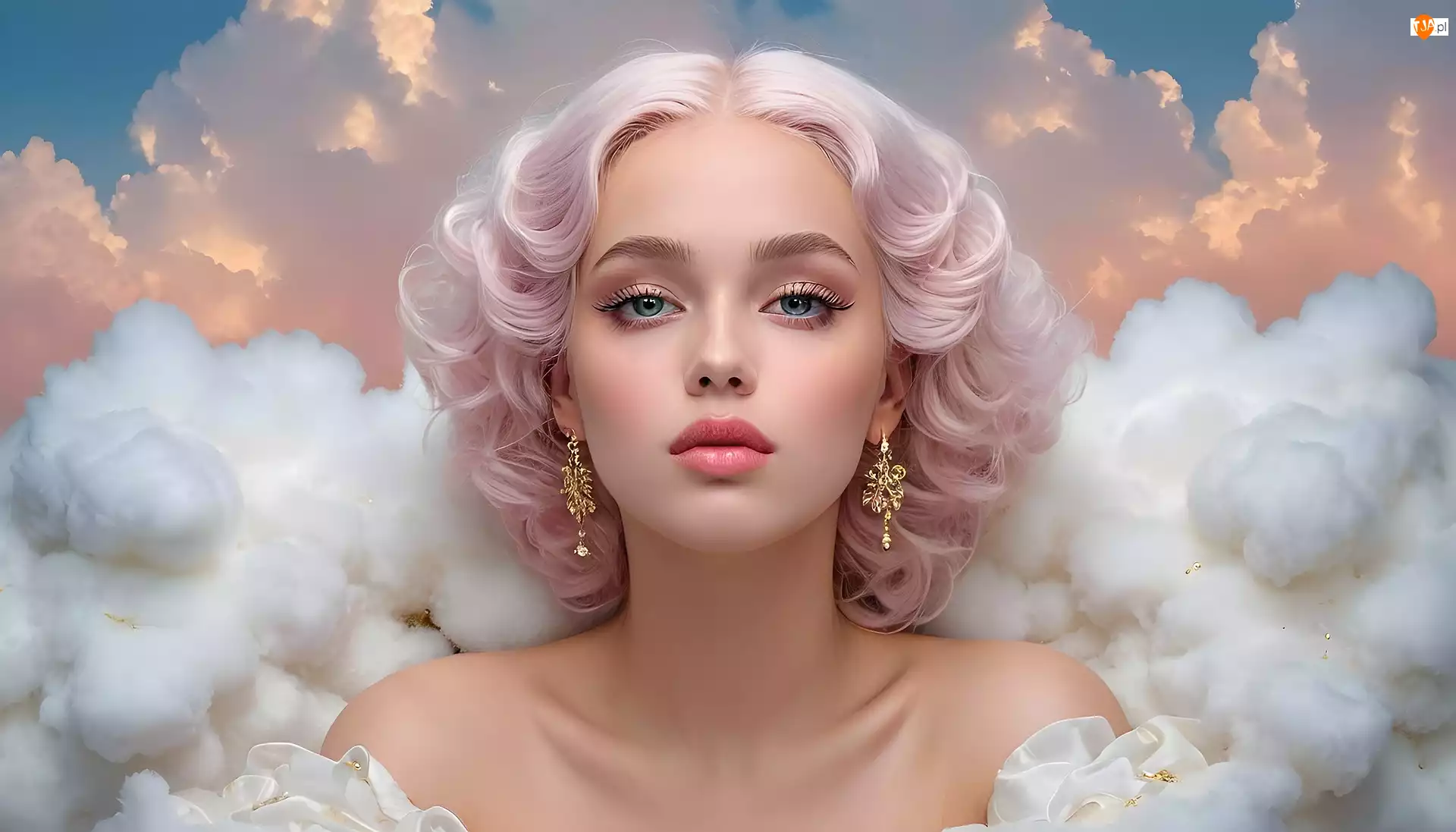 Blondynka na tle różowego nieba