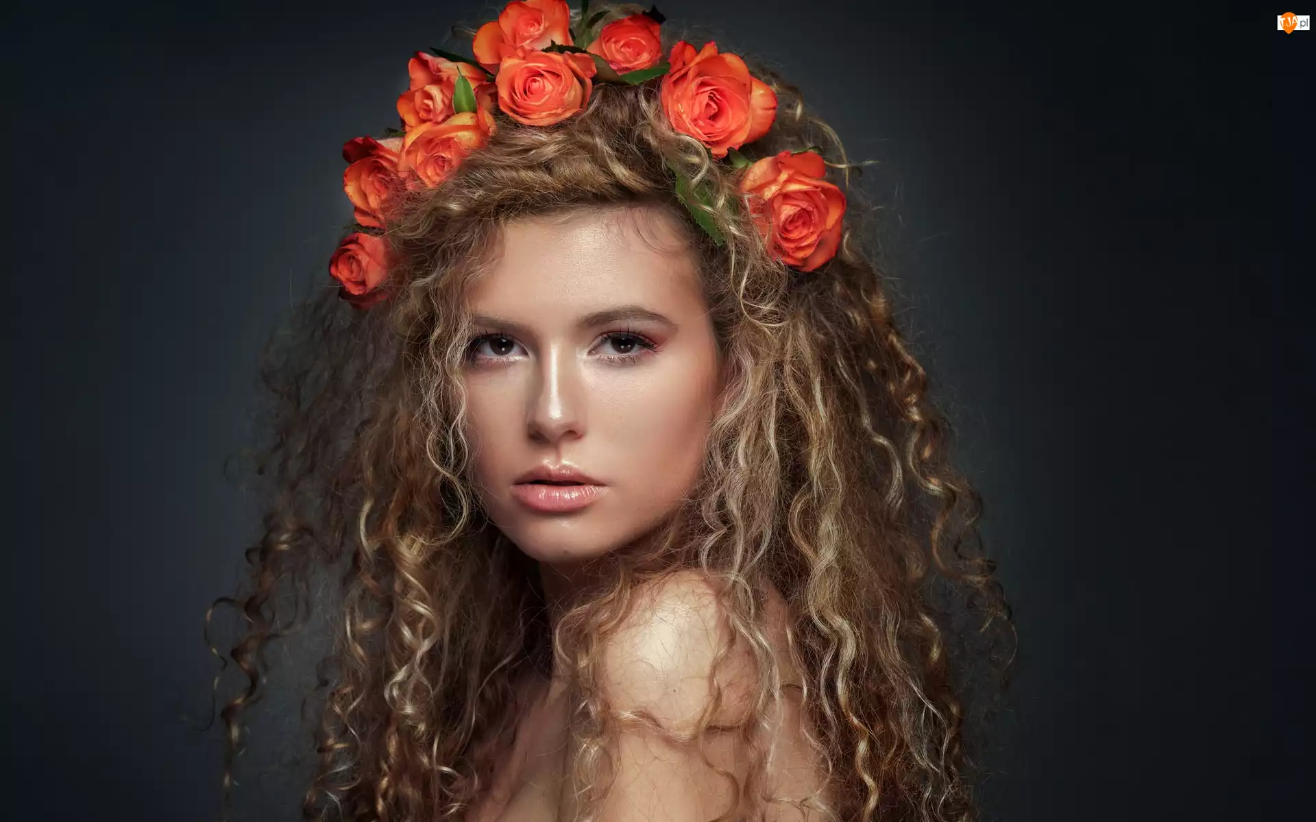 Włosy, Różyczki, Kręcone, Blondynka, Wianek