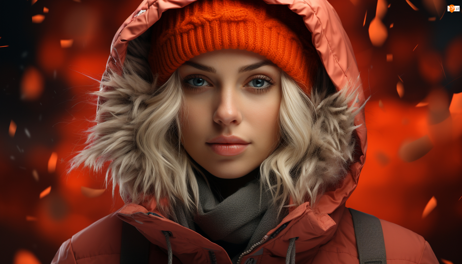 Blondynka, Spojrzenie, Grafika 2D, Kobieta, Kurtka, Szalik, Czapka
