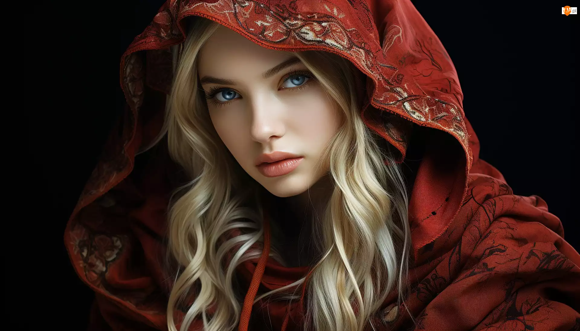 Niebieskooka, 2D, Blondynka, Kobieta, Kaptur