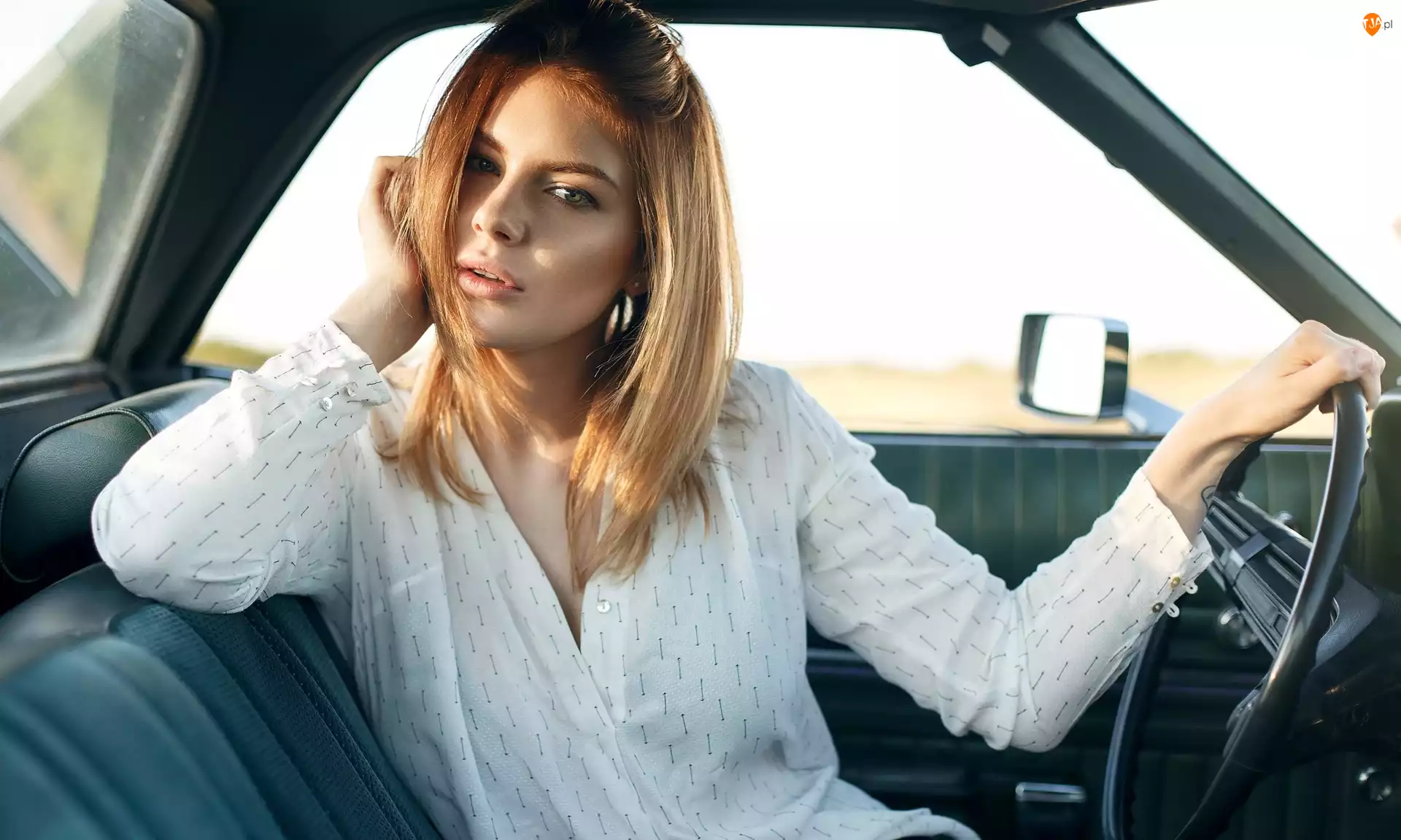 Bluzka, Wnętrze, Blondynka, Dziewczyna, Samochód