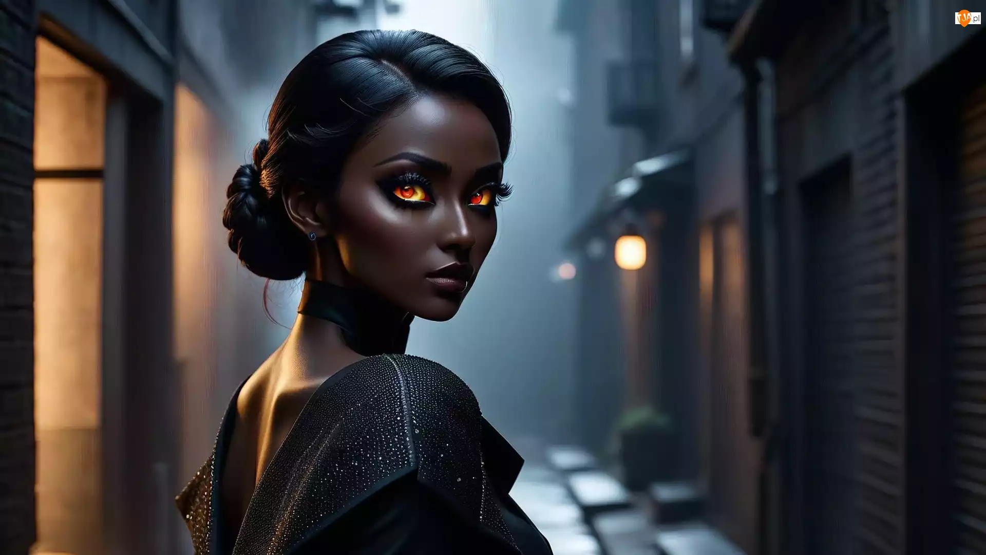 Błyszczące, Grafika, Kobieta, Ciemnoskóra, Oczy