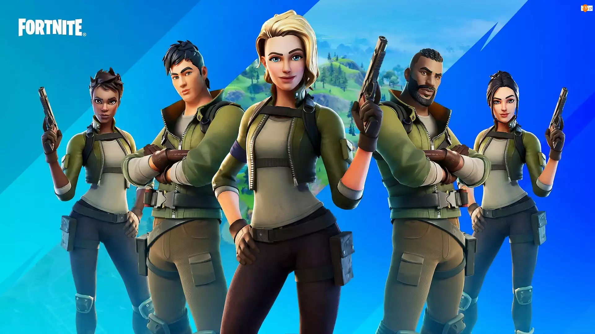 Fortnite Recruit Redux, Bohaterowie, Plakat, Gra, Broń, Mężczyźni, Kobiety