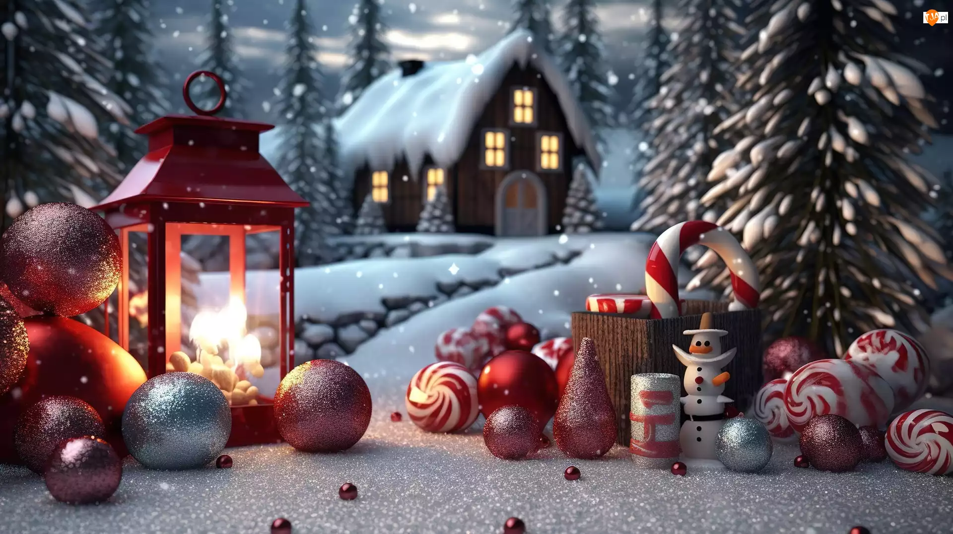 Bombki, Grafika, Ozdoby, Lampion, Boże Narodzenie